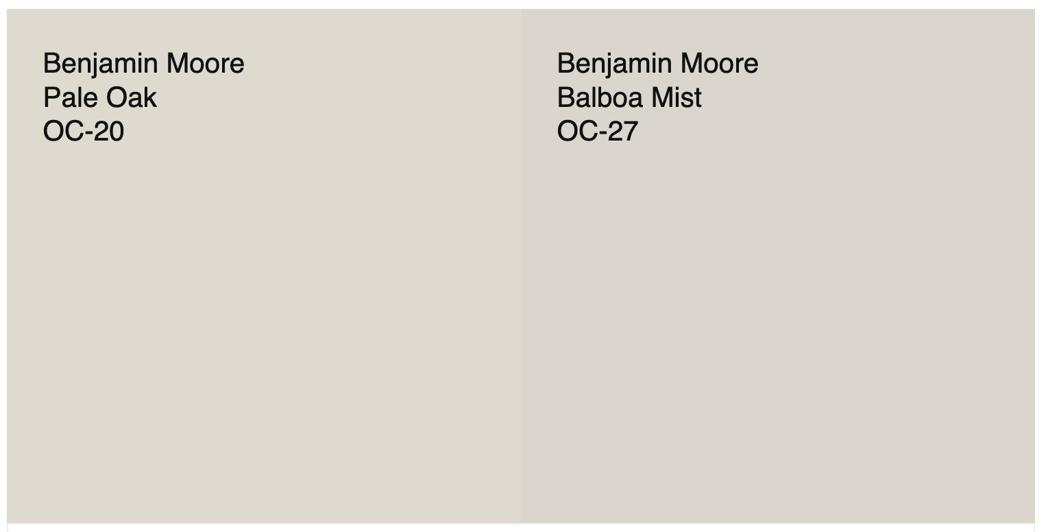 Balboa Mist (OC-27) is very close to Pale Oak but has a touch more gray, giving it a cooler feel. Pale Oak feels a bit warmer and softer. Both are beautiful, light greiges, but Pale Oak adds a touch more warmth and versatility. Balboa Mist can be a bit more unpredictable than Pale Oak, so I typically recommend Pale Oak more often to my clients.