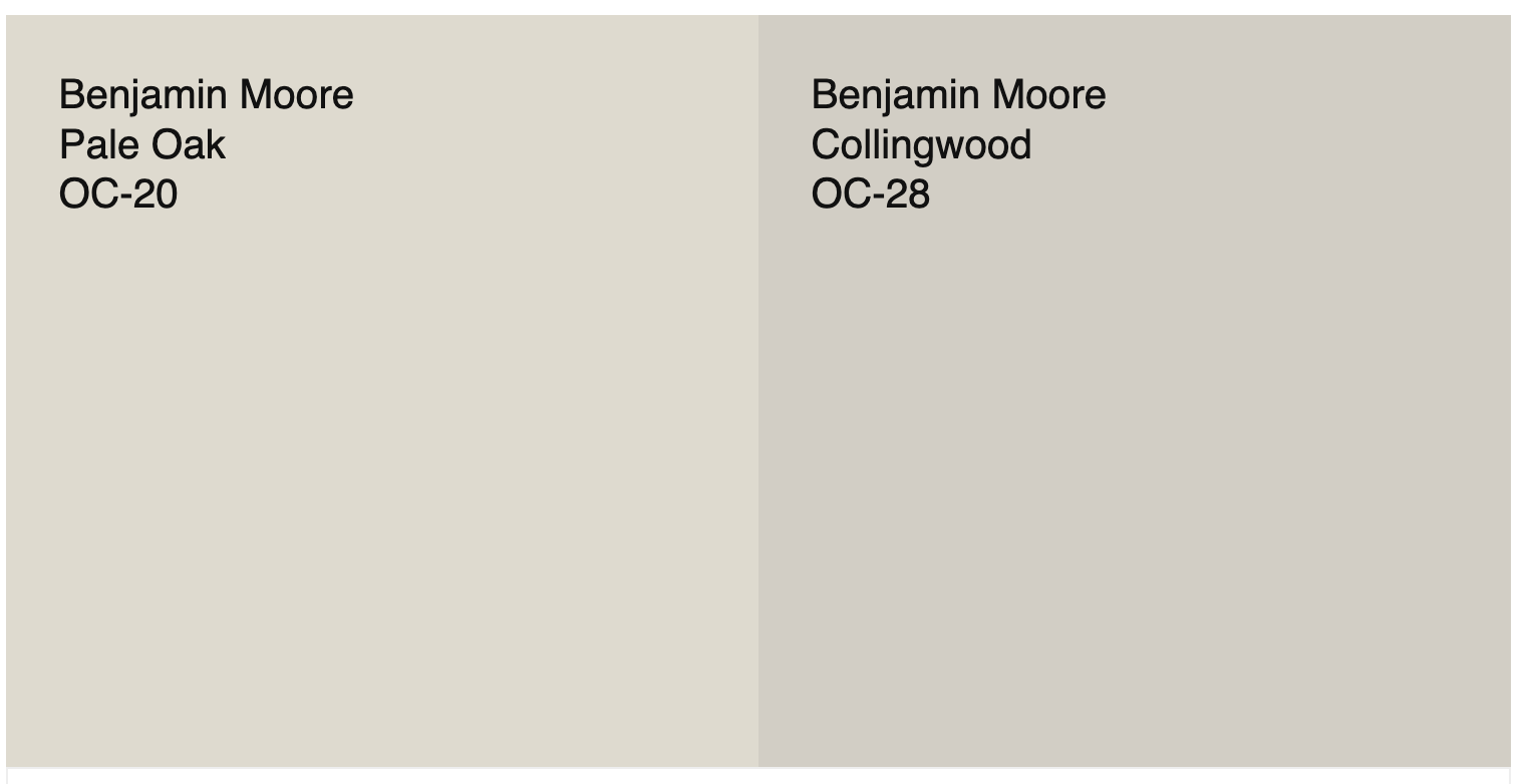 Collingwood (OC-28) is deeper and grayer than Pale Oak, with a stronger violet undertone. If your room gets a lot of natural light and you want more contrast, Collingwood could be the better choice. But for a light neutral that feels airy and serene, Pale Oak wins.