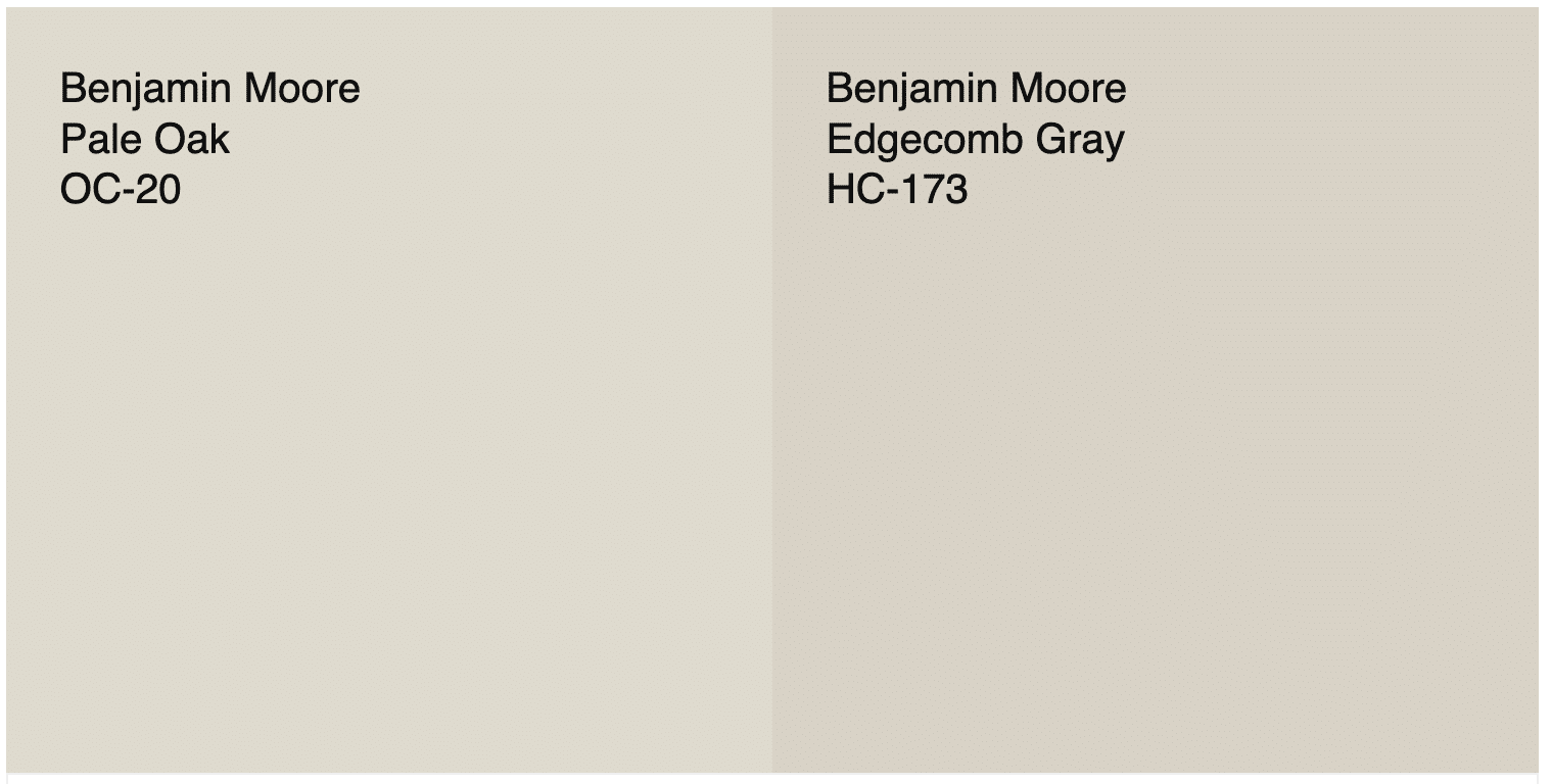 Edgecomb Gray (HC-173) is slightly darker and has more beige undertones, while Pale Oak is lighter and leans more toward gray-taupe. If you want a slightly cooler, airier feel, choose Pale Oak. For a bit more warmth and depth, Edgecomb Gray is a fantastic alternative. Check out my full review of Edgecomb Gray for more details.