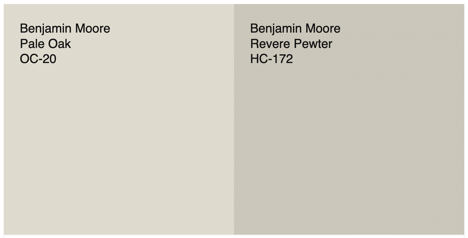 Benjamin Moore Revere Pewter (HC-172) has more depth and a slight green undertones, while Pale Oak is lighter and softer. Revere Pewter is better suited for medium-tone walls or rooms needing contrast, whereas Pale Oak is perfect for bright, open interiors. See my full review of Revere Pewter to see why this is a designer favorite.