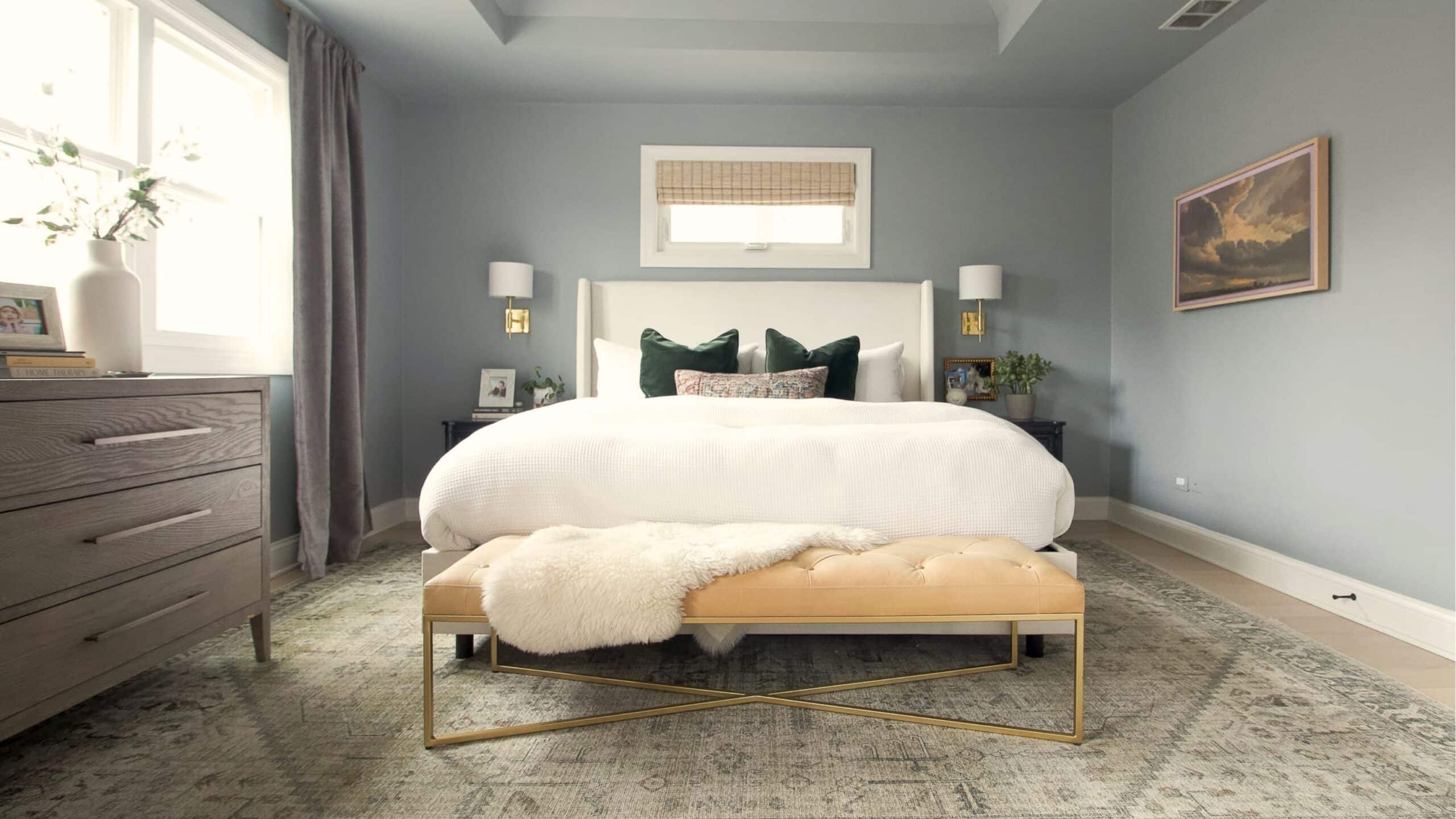 Next up is Benjamin Moore’s Boothbay Gray. This is one of my all-time favorites for a tranquil bedroom! It’s a blue-gray with a classic coastal, yet also a timeless traditional vibe. It has just enough pigment to bring character to your walls, while still feeling super restful. Boothbay Gray is ideal for bedrooms with plenty of natural light, where you want a bit of color and a whole lot of calm. In low-light spaces, it could lose some of its blue color, leaning more into its gray tones.